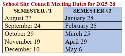 California law requires that each public school will convene a school site council which is charged with development and approval of the school's improvement plan. School Site Council meetings are open to the public and prior notice must be given before the council meets to take any action. Agendas are posted in the main office and/or via the Parent Square app in accordance with California Education §Code 35147, which requires public posting at least 72 hours in advance of the meeting.